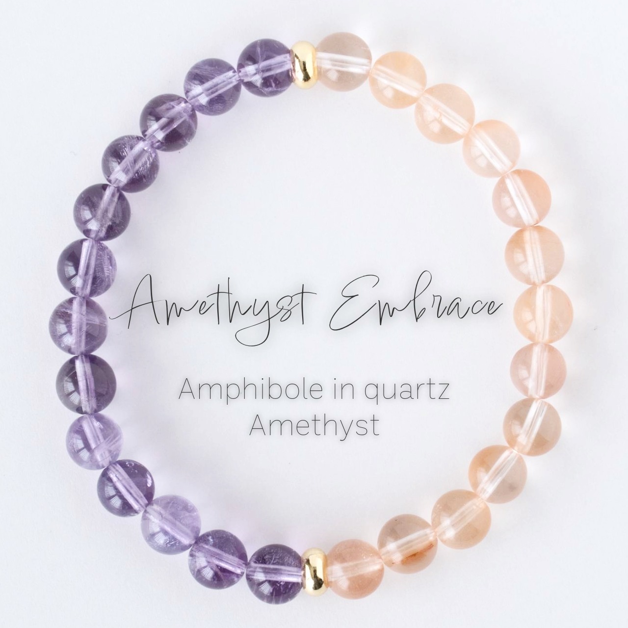 【Amethyst Embrace】アメジスト・アンフィボールインクォーツ /天然石 ブレスレット