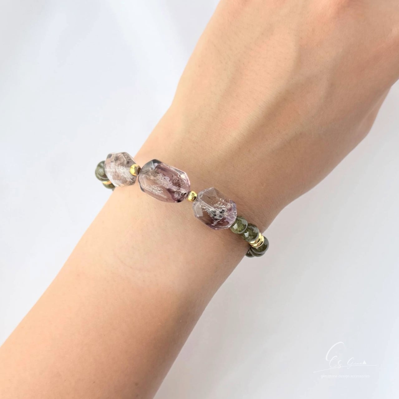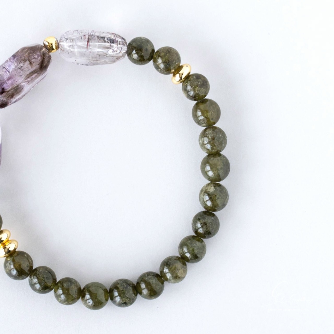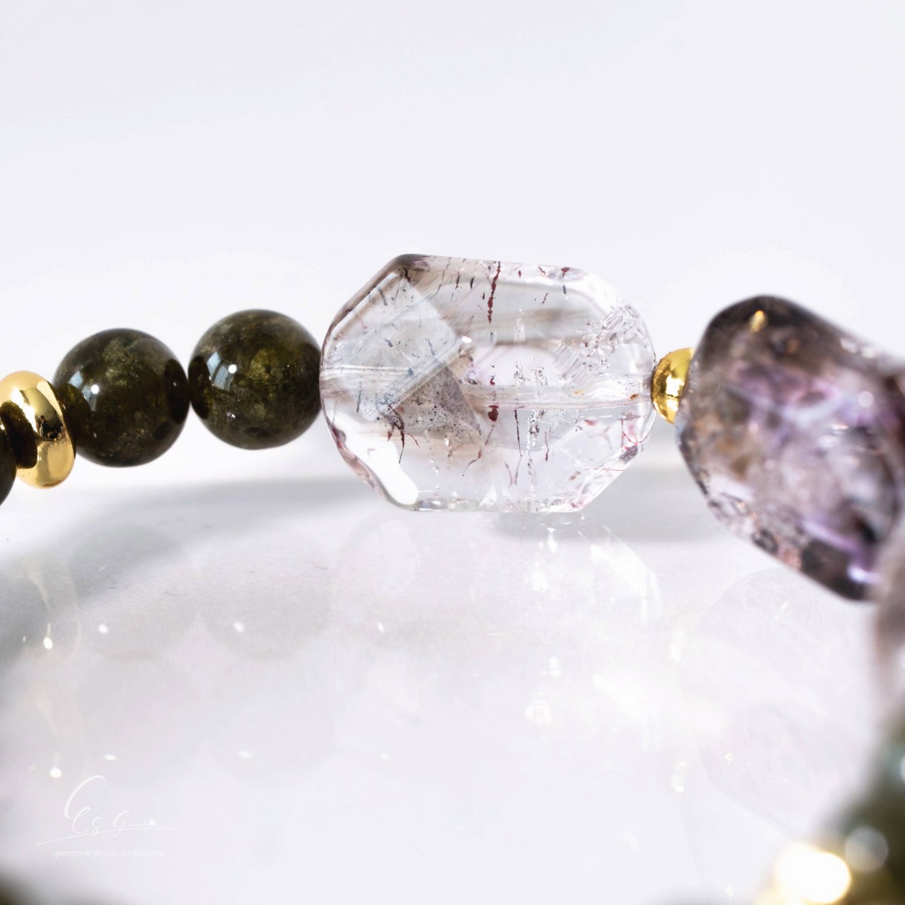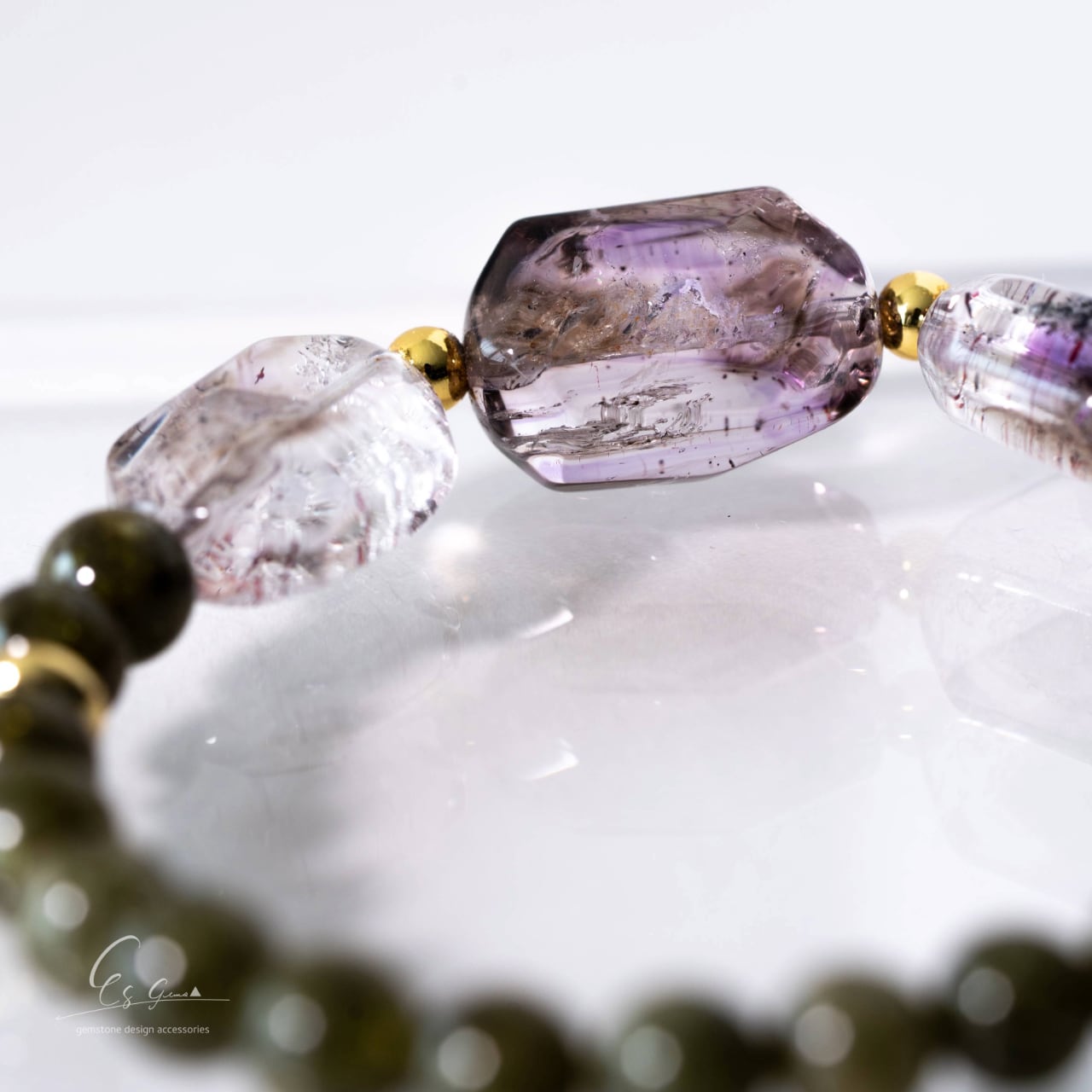 【Mystic Bloom】アメジストエレスチャルスーパーセブン・グリーンガーネット /天然石 ブレスレット