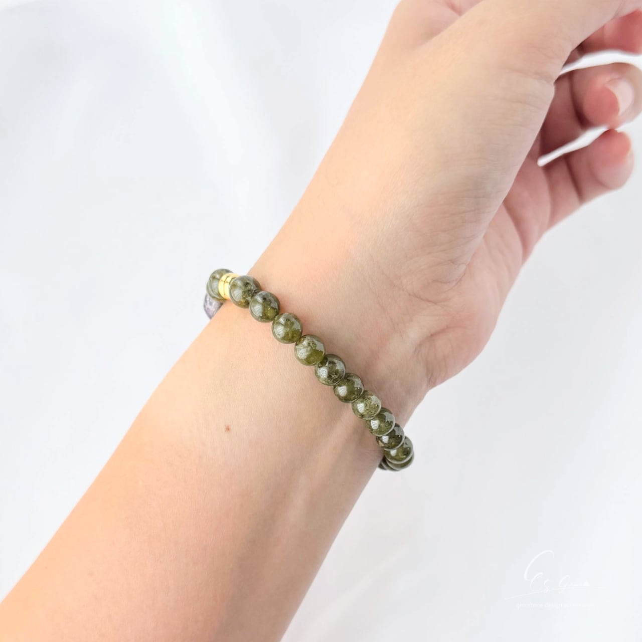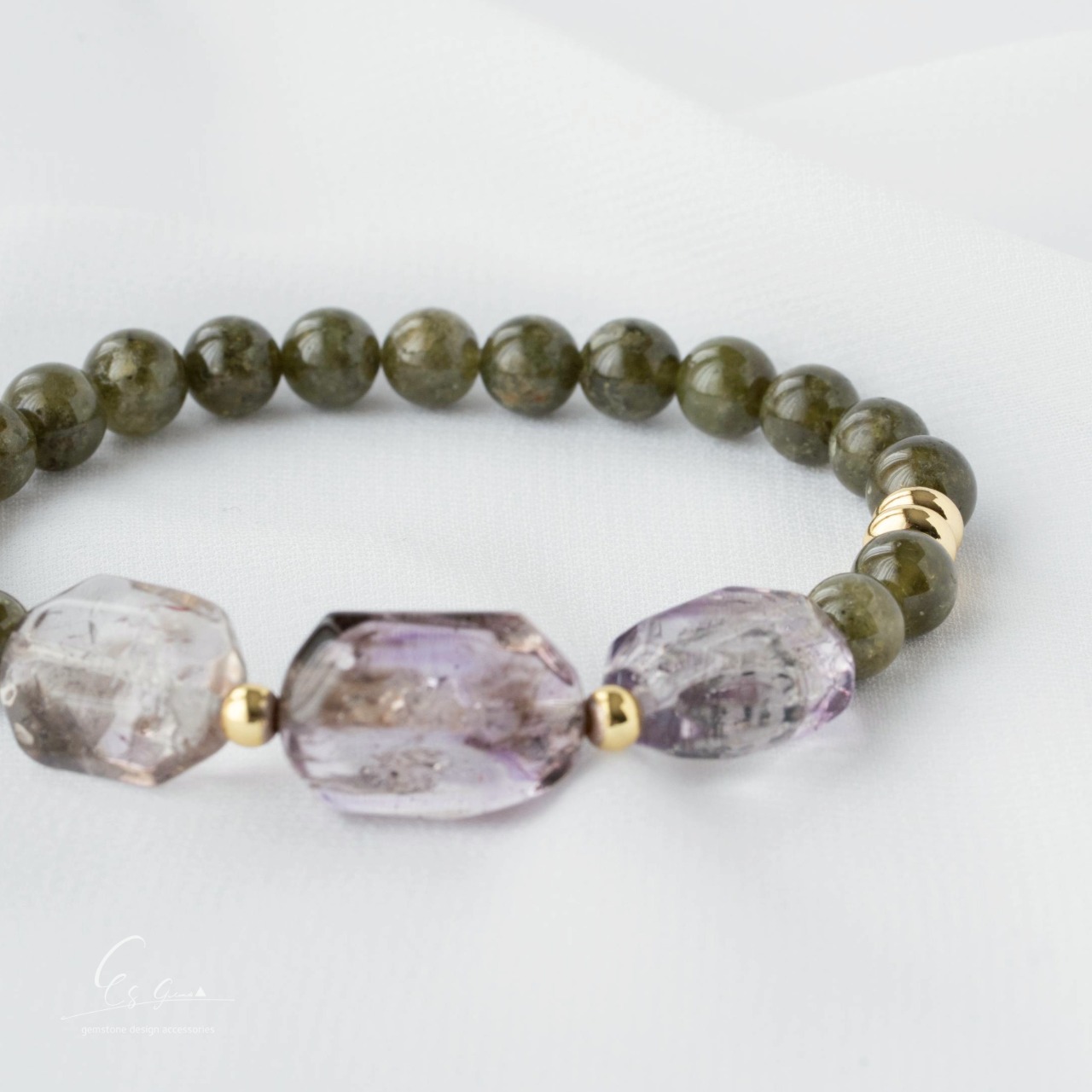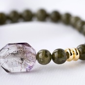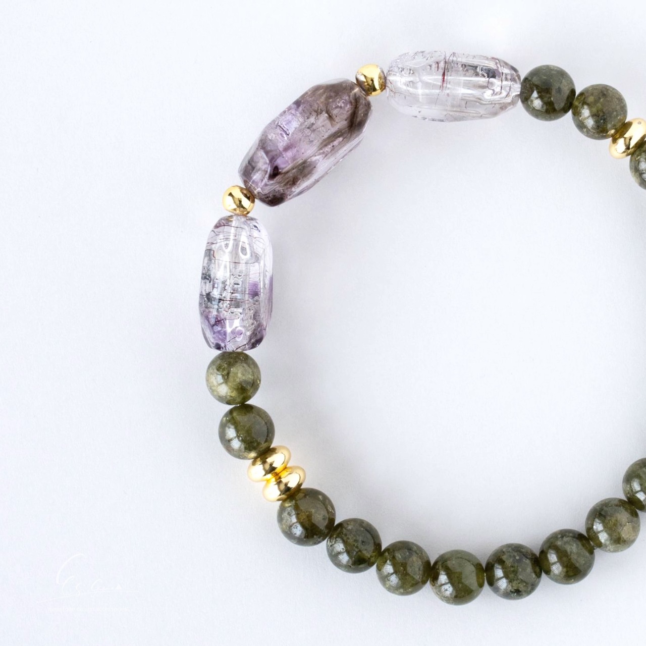【Mystic Bloom】アメジストエレスチャルスーパーセブン・グリーンガーネット /天然石 ブレスレット