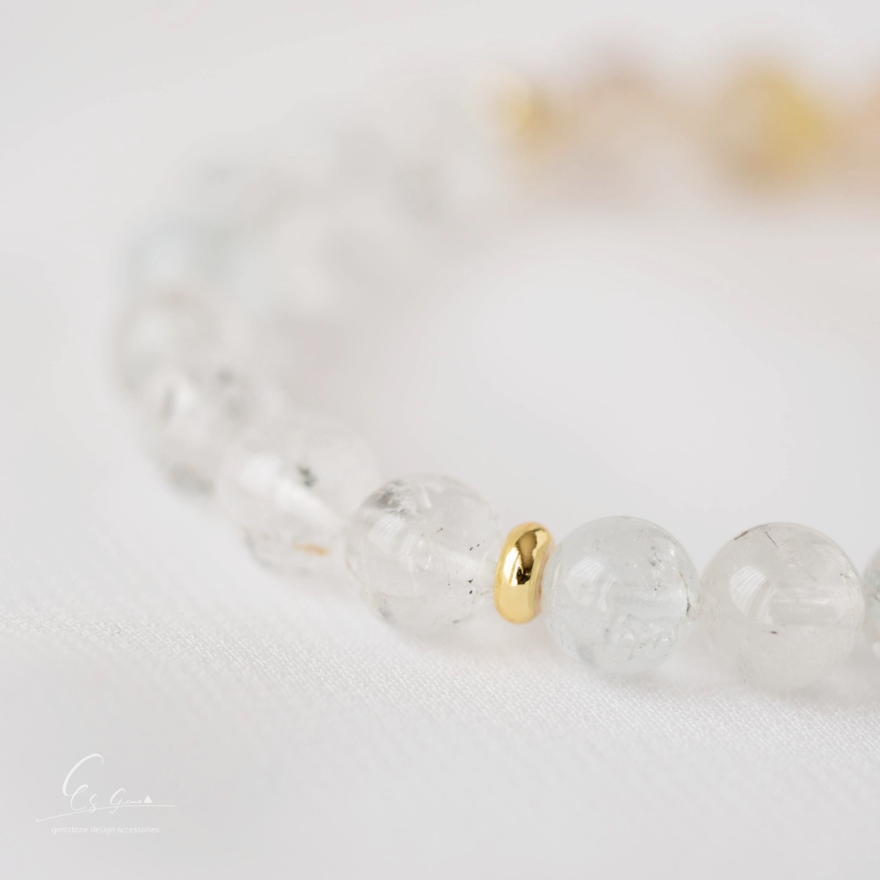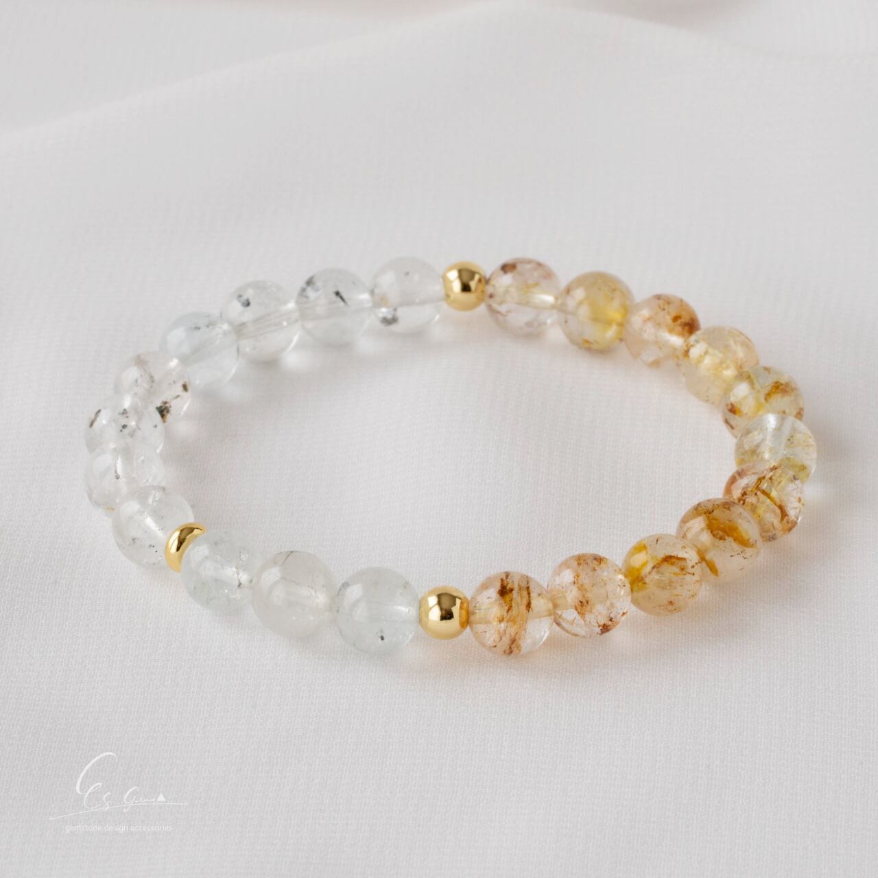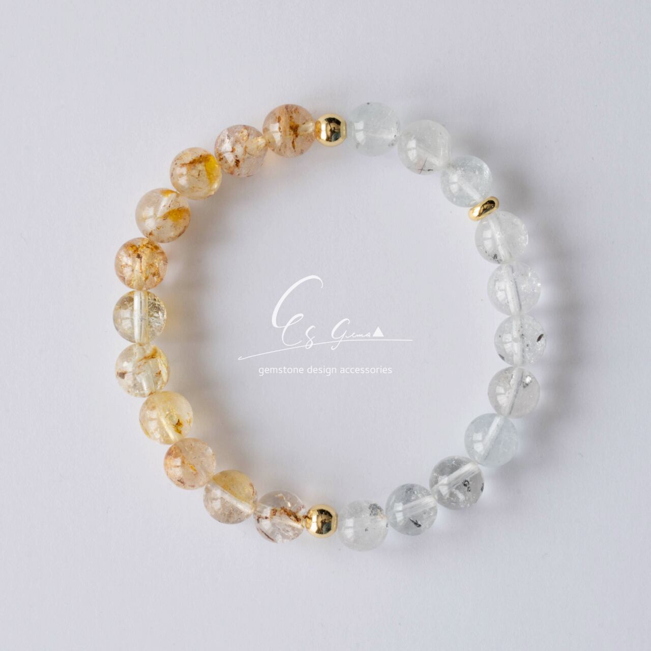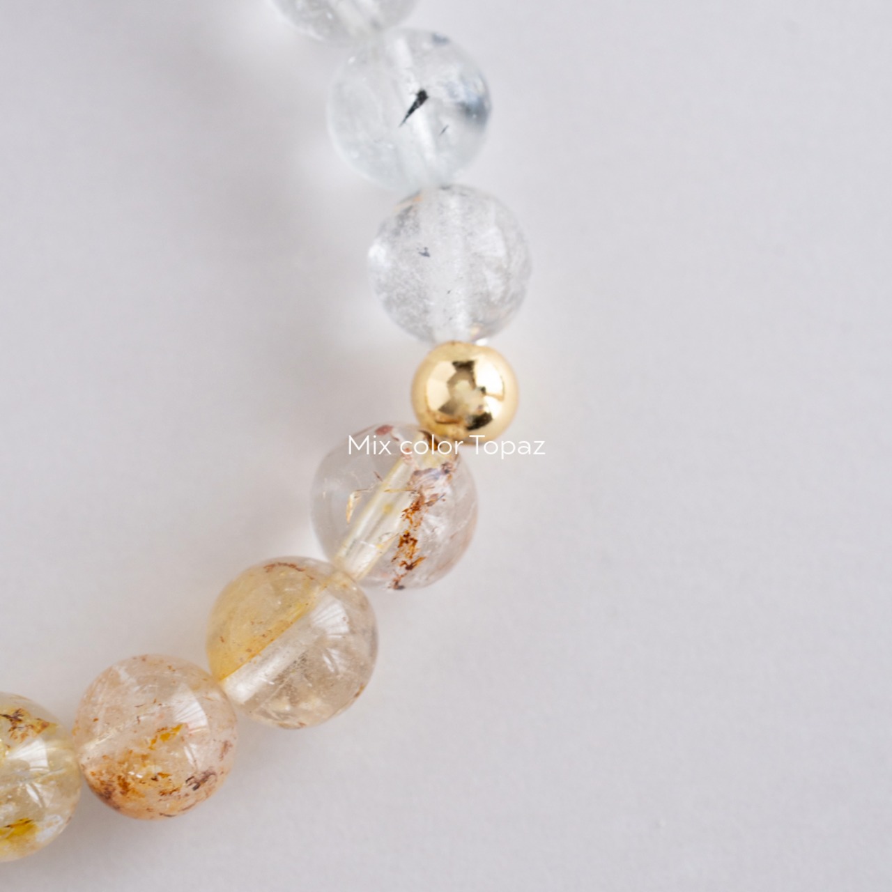 澄んだ輝きを放つホワイトトパーズと、あたたかみのあるイエロートパーズを組み合わせたミックストパーズは、心身のバランスを整え、毎日をポジティブに過ごしたい方にぴったりのブレスレット