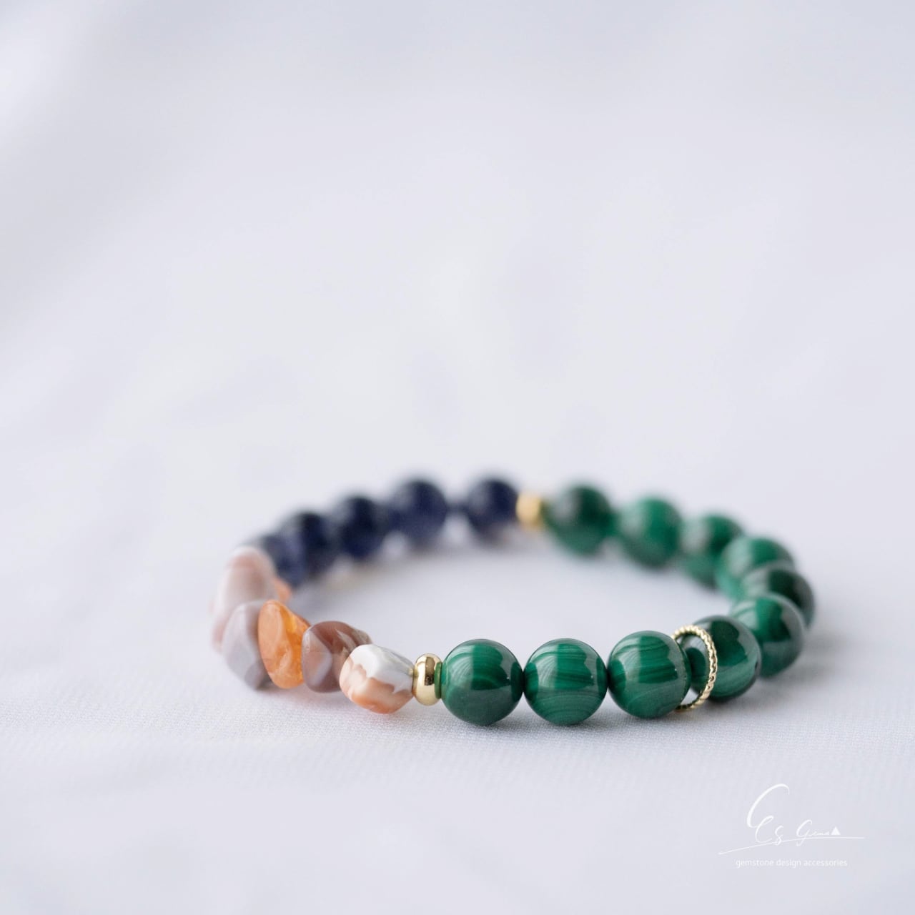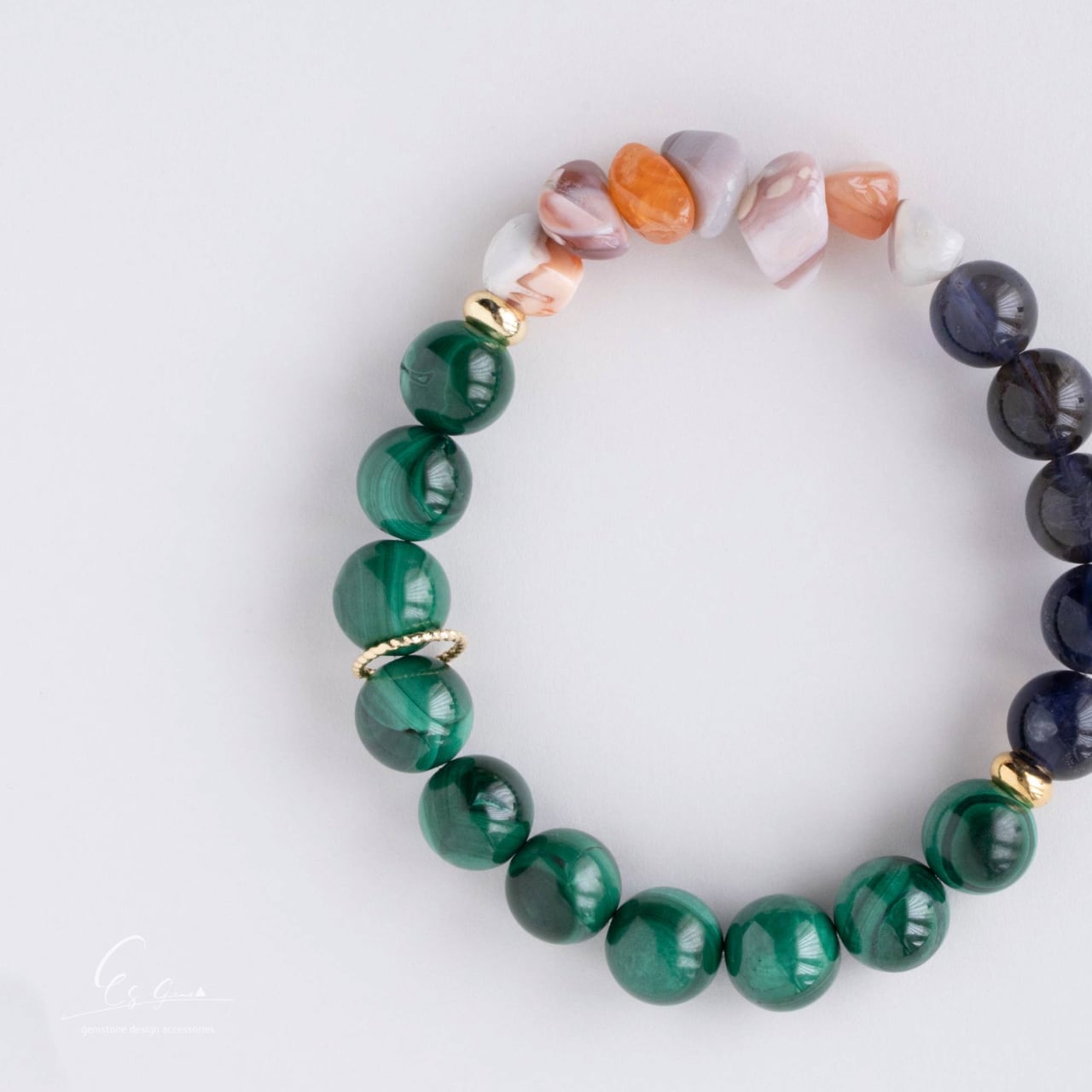 【Earth & Spirit】ボツワナアゲート・アイオライト・マラカイト /天然石 ブレスレット
