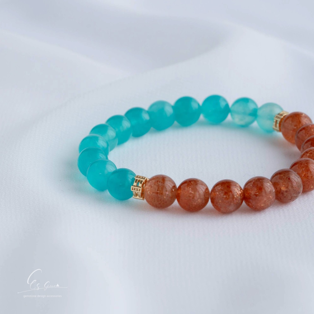 【Sunlit Breeze】アマゾナイト・サンストーン /天然石 ブレスレット
