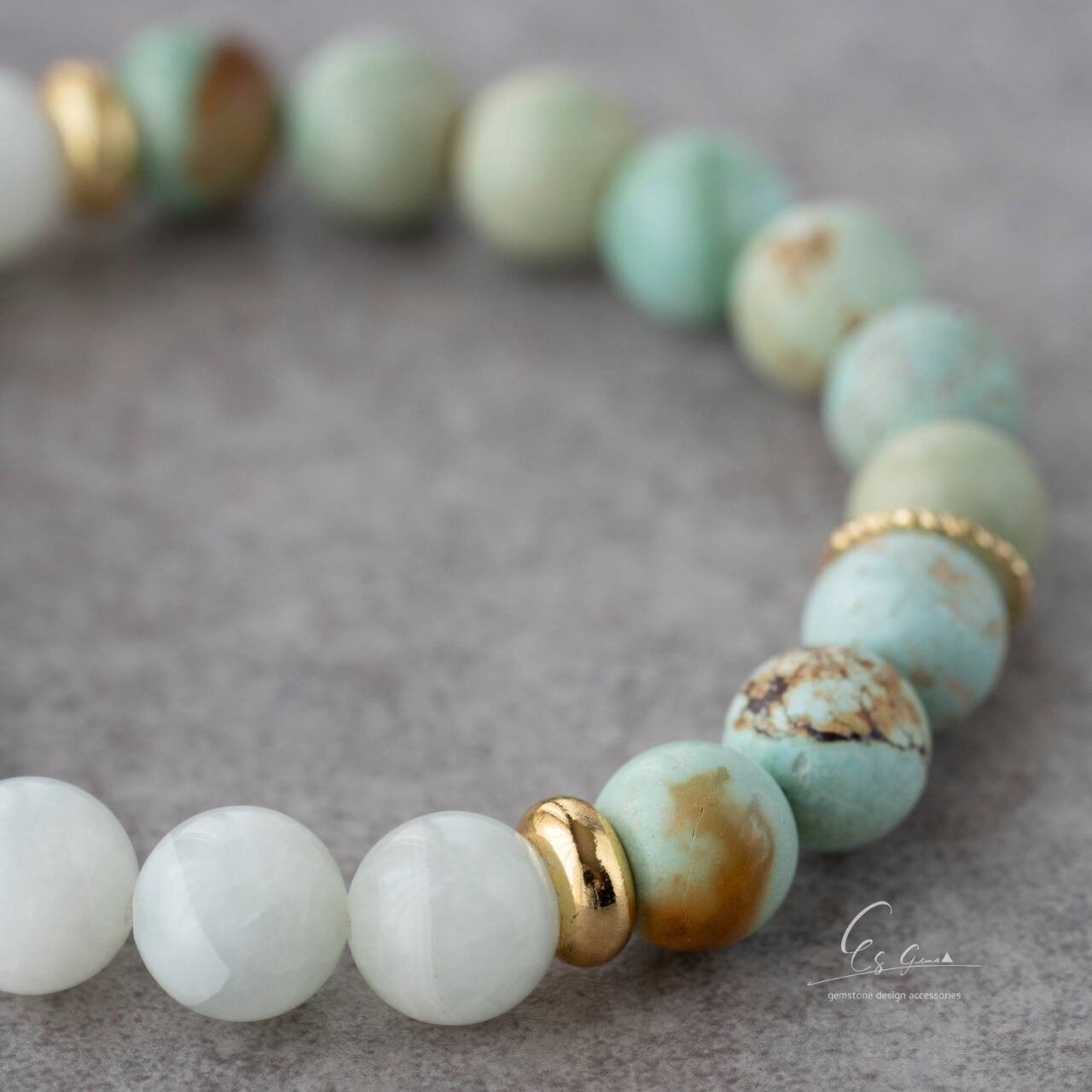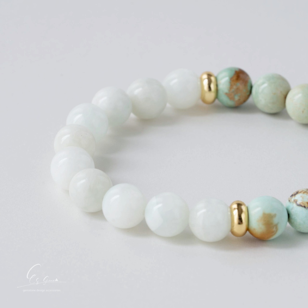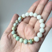 まるで光と風が粒になって手首に並んだような、やさしい色彩と質感が魅力のブレスレットです